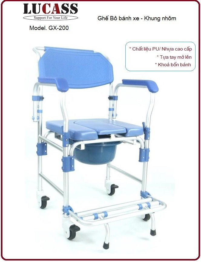 Ghế bô nhôm có bánh xe để bồn cầu GX-200 (bô tròn)